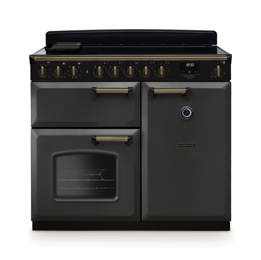 Classic Deluxe 100cm Induction Range Cooker – Slate with Antique Brass Trim