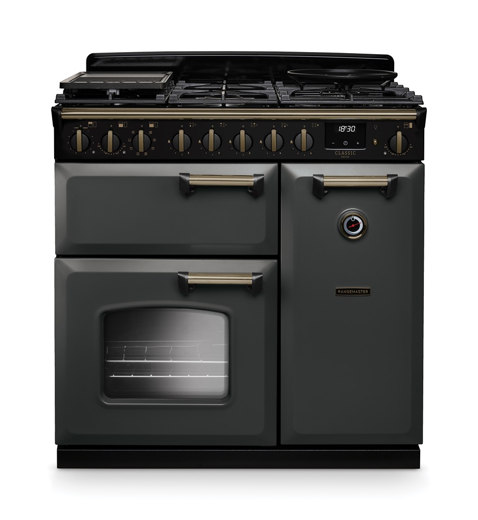 Classic Deluxe 90cm Dual Fuel Range Cooker – Slate with Antique Brass Trim