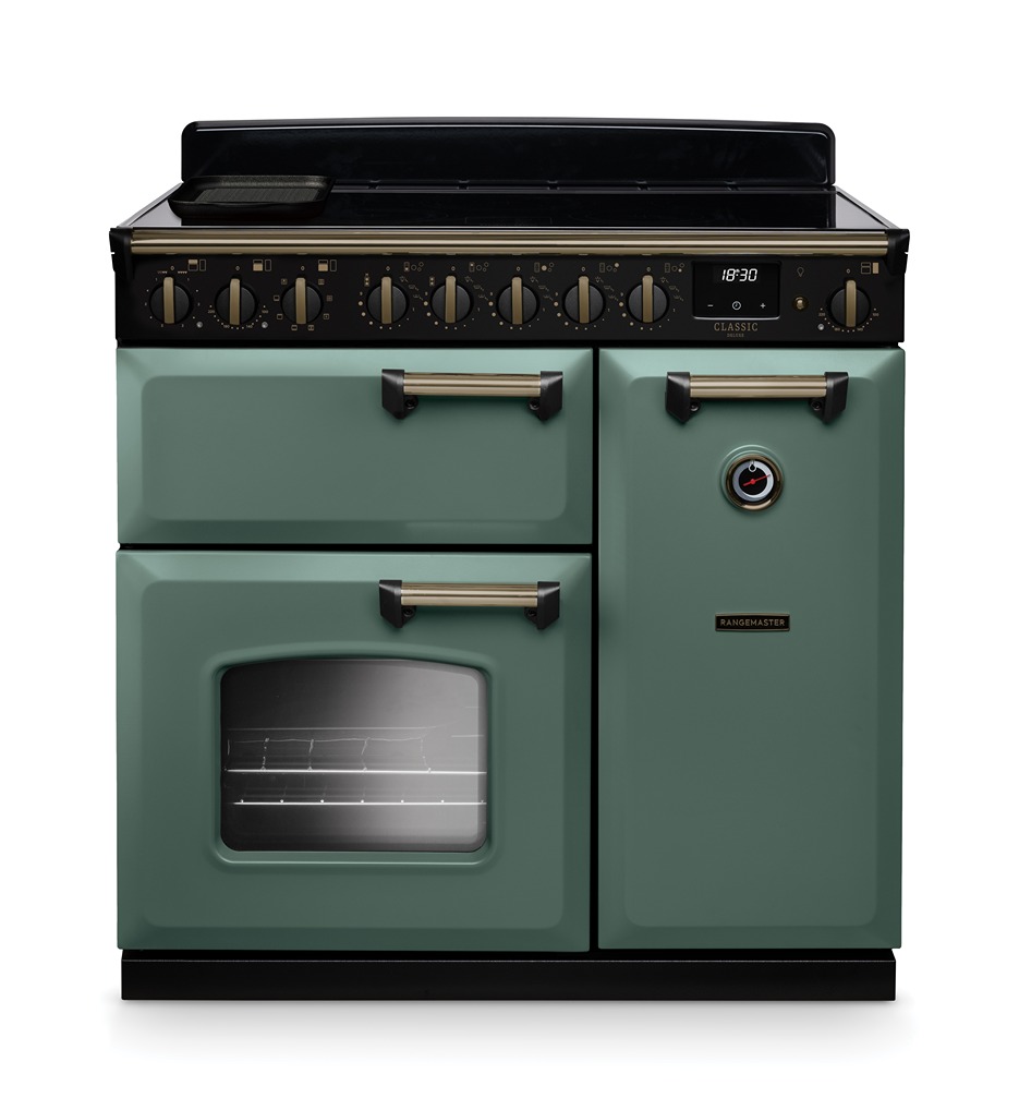 Classic Deluxe 90cm Induction Range Cooker – Mineral Green with Antique Brass Trim