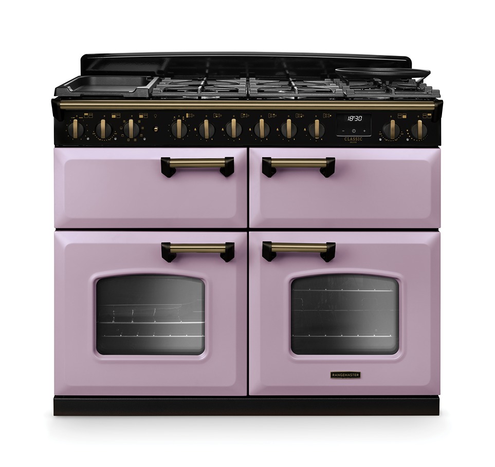 Classic Deluxe 110cm Dual Fuel Range Cooker (Slow Oven) – Heather with Antique Brass Trim