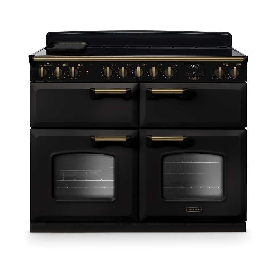 Classic Deluxe 110cm Induction Range Cooker (Slow Oven) – Charcoal Black with Antique Brass Trim