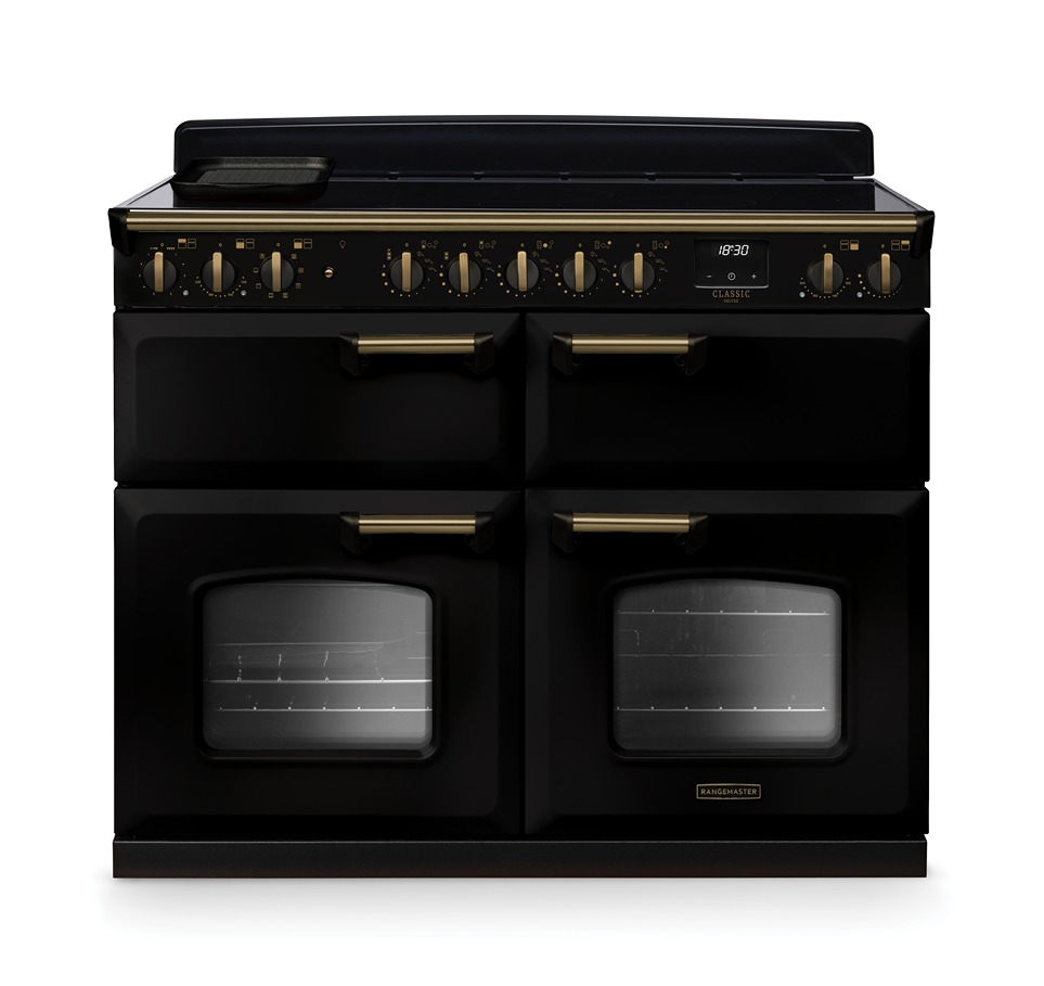Classic Deluxe 110cm Induction Range Cooker (Slow Oven) – Black with Antique Brass Trim