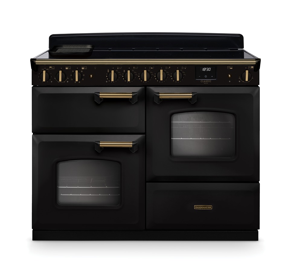 Classic Deluxe 110cm Induction Range Cooker – Charcoal Black with Antique Brass Trim